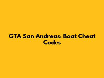 GTA San Andreas: Boat Cheat Codes