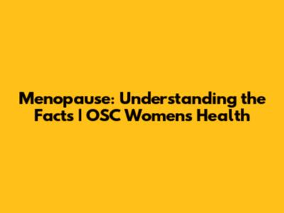 Menopause: Understanding The Facts | OSC Women's Health